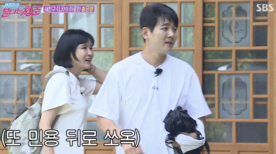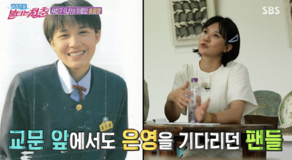 방송에서 마중 올 친구를 기다리던 송은영은 제작진과 함께 송은영이 데뷔한 드라마 '나' 1회 장면을 다시 재연하며 눈길을 끌었는데요. 송은영은 마중 올 친구로 김부용을 기대하며 한때 자신의 이상형이었다고 고백했습니다. 뒤 이어서 등장한 최민용과 송은영은 24년 만에 만나는 것이라고 밝히며 서로 반가운 인사를 나누기도 했습니다.